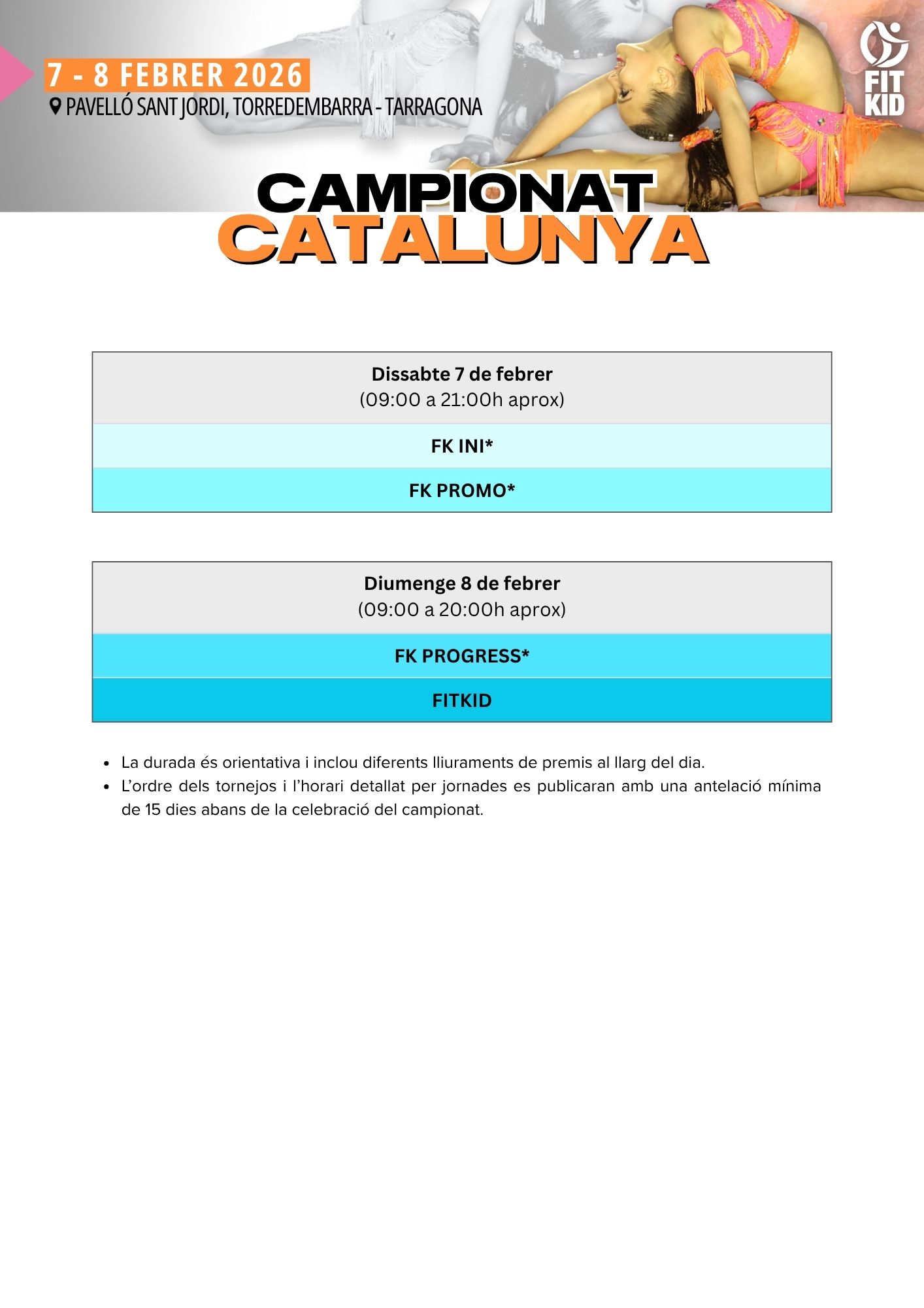 Una auténtica demostración de danza, fuerza, salto, equilibrio y acrobacia, donde participantes desde los 3 años muestran su talento en las especialidades de FK Ini, FK Promo, FK Progress* y Fitkid®. Compite en modalidad solo o dúo y vive una experiencia única llena de emoción y espectáculo.